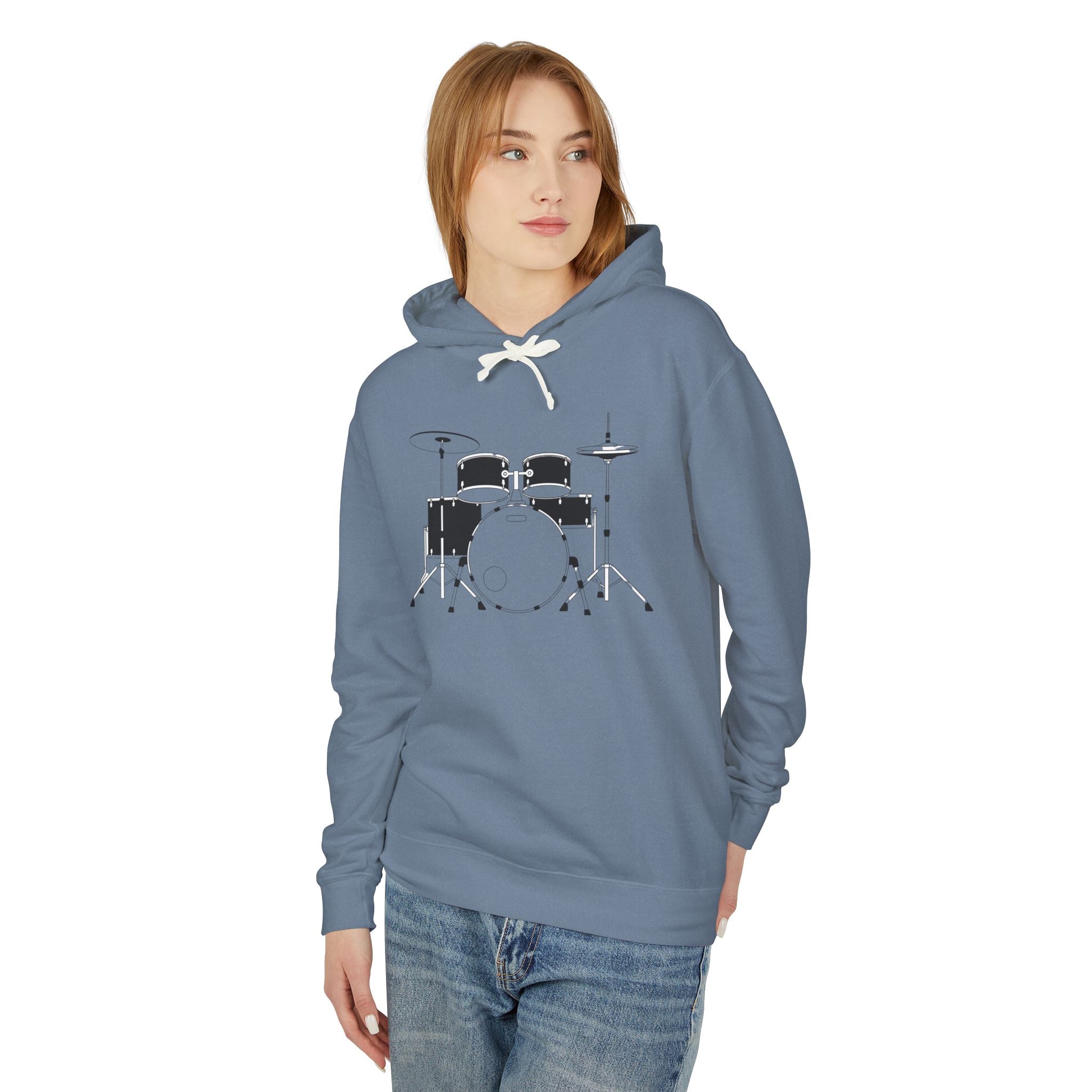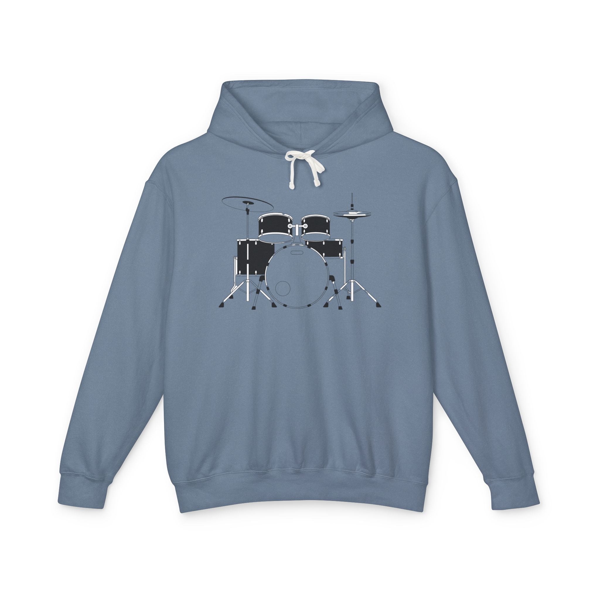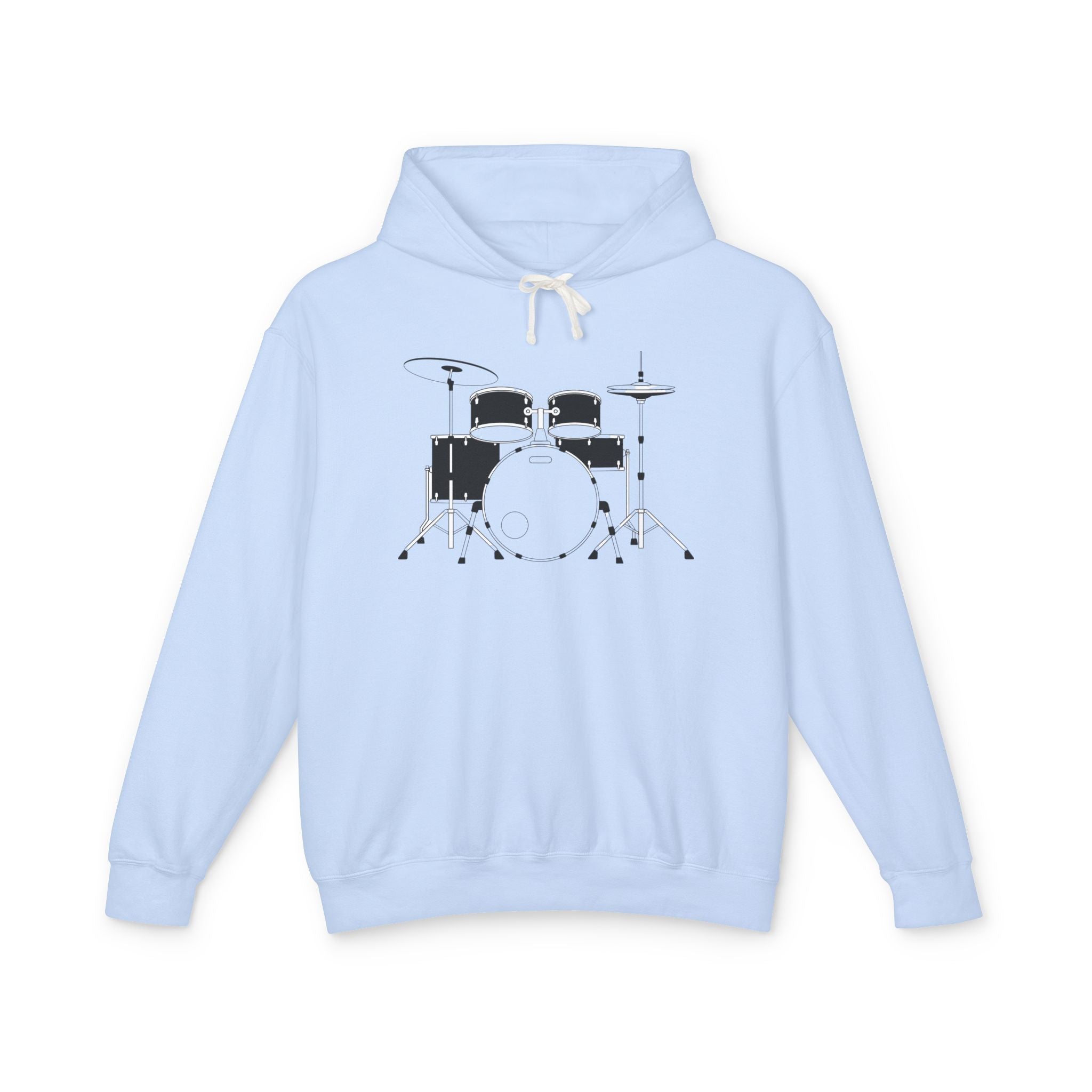 A soft, lightweight hooded sweatshirt featuring a clean, minimalist drum kit illustration across the chest. The relaxed silhouette and jersey-lined hood make this hoodie an easy layer for rehearsals, late-night gigs, or coffee-shop practice. Breathable ring-spun cotton keeps you comfortable during long sessions, while the subtle graphic speaks to a love of rhythm without shouting. Wear it over a tee between sets, throw it on for travel to the next studio, or keep it on through slow mornings of tuning and cuing — it settles into the musician’s routine like an old pair of sticks.
