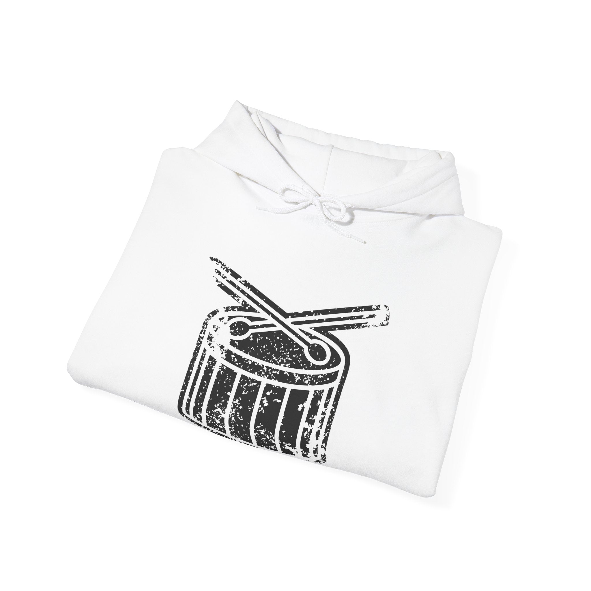 A cozy, lived-in hoodie made for musicians and music lovers who carry rhythm with them. The soft white fleece frames a distressed drum-and-sticks graphic that looks like it’s been played into the fabric — worn-in, honest, and full of character. Slip it on after rehearsal or between gigs; the roomy kangaroo pocket warms cold hands and holds picks, cables, or a phone. The double-lined hood and color-matched drawcord give a clean, durable finish, while the mid-weight cotton/poly blend keeps you warm without weighing you down. This hoodie sits naturally in a creative wardrobe: comfortable for late-night practice sessions, drive-in concerts, or hanging out with bandmates.